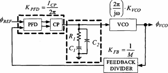 The figure above shows the classical charge pump PLL. Note that Kvco is the gain of the VCO in Hz/V [and thus the 2*pi factor].