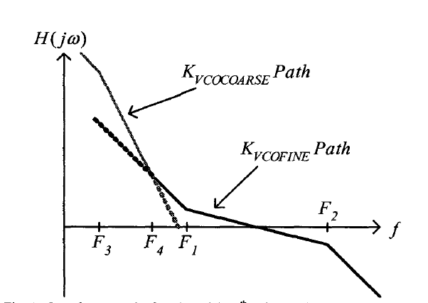 Note that the system now has four poles and two zeros. Note that what we really intended was to reduce gain of the VCO without compromising on the locking range. To do that, the part corresponding to coarse path must become negligible before you encounter the first zero of the fine path. This is a roundabout way of saying that the zero due to the addition of the secondary path must be BEFORE the zero in the fine loop.