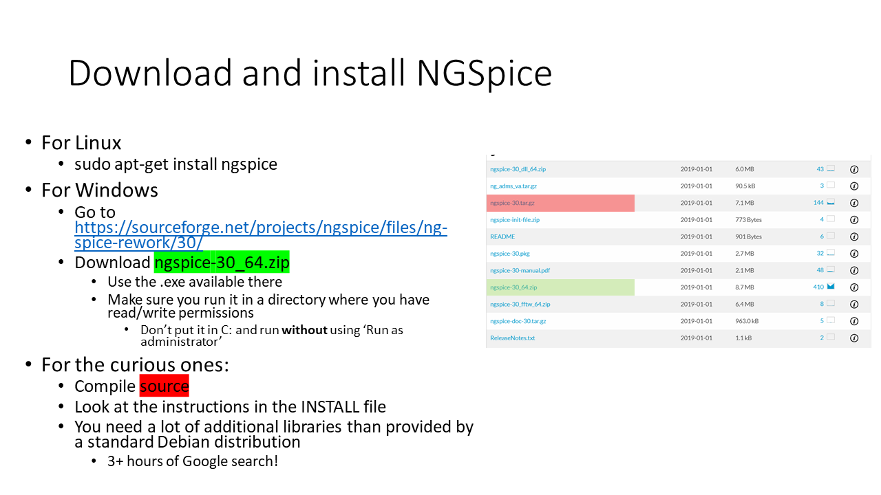 NGSpice for circuit simulation